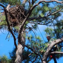 Over the years, Nuckols Tree Care has assisted wildlife officials in retrieving and returning eagles, owls, osprey, and more to their nests. We started working with the American Bald Eagles at Norfolk Botanical Gardens when they began nesting back in 2003. The journey had its highs and lows, and we made a lot of friends along the way.